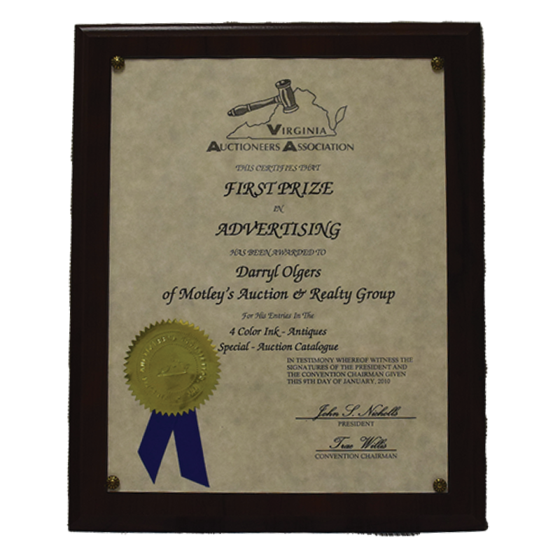 Awarded by the Virginia Auctioneers Association for Other Print Advertising.